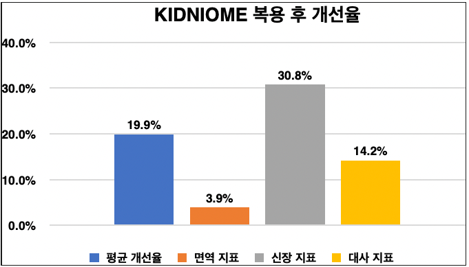 | 11개 주요 Biomarker | 평균 19.9% 개선 (암모니아 46.3%, 크레아티닌 27.6% 개선) |
